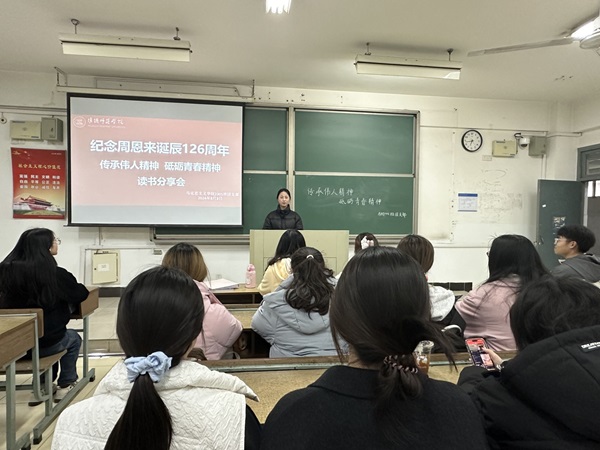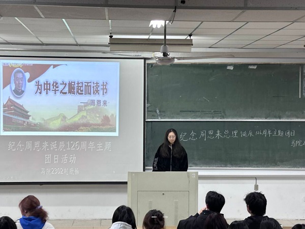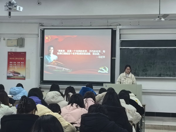 2301班团支书王雪纯带领员工们回顾了周恩来总理为人类进步事业而奋斗的光辉一生,员工们积极发表对于有关周恩来总理著作的感受与思考。2302班团支书赵欣怡从外交智慧、人民公仆和周恩来精神三个方面展开,阐述了周恩来崇高精神风范的具体内容。2201班团支书王雪菲和 2202班团支书朱晓轩通过讲述周恩来总理青年时期的红色故事,深入挖掘周恩来总理的崇高品质和精神内涵,勉励员工们要自觉践行恩来精神,树立远大理想。最后,员工们在线上为周恩来总理献花,表达对周总理的敬意与哀思。