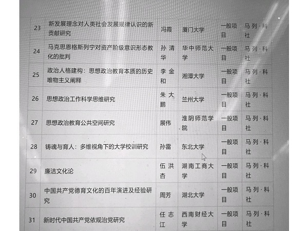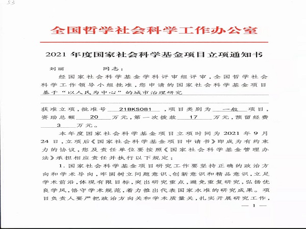 近日,国家社科规划办公布了国家社科基金项目资助名单,公司展伟教授申报的《思想政治教育公共空间研究》获批国家社科基金项目后期资助,刘丽教授申报的“基于‘以人民为中心’的城市治理研究”获批国家社科基金一般项目资助。