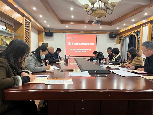 首先,刘小华带领中心组成员集中学习了习近平文化思想的主要内容和重大意义。中心组成员张尚兵和王升臻两位老师作重点发言。张尚兵就习近平文化思想研究的几个热点问题作了详细阐述,王升臻就习近平文化思想的深刻内涵与原创性贡献作了系统阐释。随后,中心组成员围绕习近平文化思想展开热烈讨论,并一一发表了自己的学习心得体会。