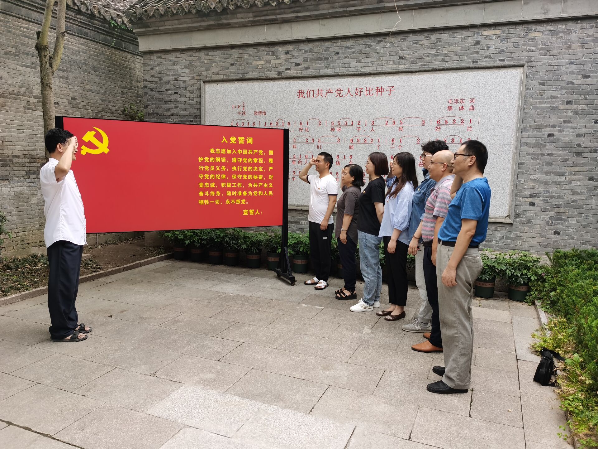 在召开组织生活会之前,同志们认真参观了政府的各个展厅,对苏皖边区政府成立的历史沿革、及其在政治、经济和文化等方面工作作了深入了解。在《我们共产党人好比种子》照壁前,支部书记李陈给支部党员上了一堂《做一颗立德树人好种子》党课。随后,全体党员面对党旗重温入党誓词。