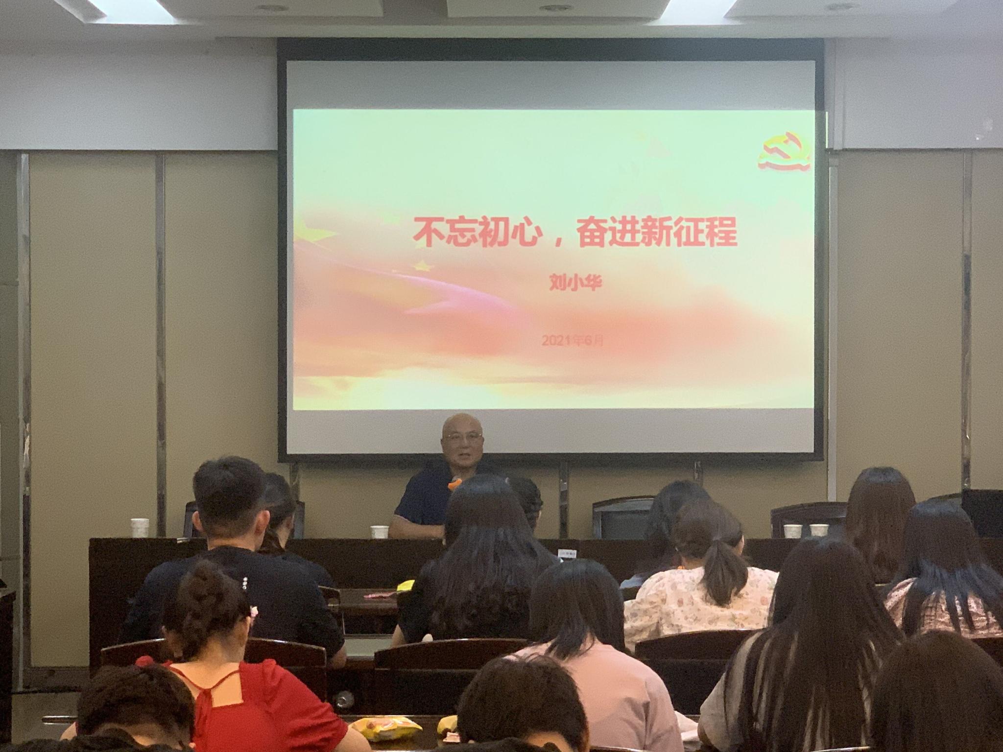 今年是中国共产党建党一百周年,刘小华以百年党史为关键词,从点亮理想之灯、笃立鸿鹄之志和激扬青春梦想三个方面出发,向毕业生党员们阐述了树立远大理想并务实完成自己目标的重要性与必要性。